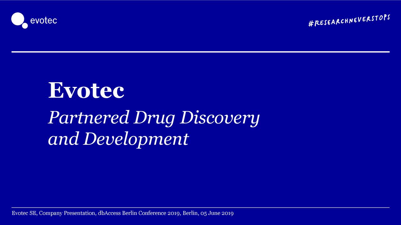Evotec是一家药物发现合作平台和药物开发合作公司,他们专注于与领先的制药和生物技术公司、学术机构、患者团体和风险投资方合作,一起迅速推进创新治疗产品和方法。他们建立的专业平台囊括了一流的科学家和集成的先进技术,借助关键治疗领域的大量经验和专业知识提供合作服务,涉及领域包括神经疾病、糖尿病和糖尿病并发症、疼痛和炎症、肿瘤、传染病、呼吸道疾病、纤维化、罕见疾病和女性健康。目前,Evotec在临床、临床前和药物发现阶段共有100多个药物开发合作,并已经与拜耳、勃林格殷格翰、百时美施贵宝、CHDI、诺华、诺和诺德、辉瑞、赛诺菲、武田、UCB等多家企业建立了长期的合作伙伴关系。2019年5月20日,Evotec SE以9000万美元收购Just Biotherapeutics,进入生物药服务领域,旨在成为制药行业的首选创新合作伙伴。