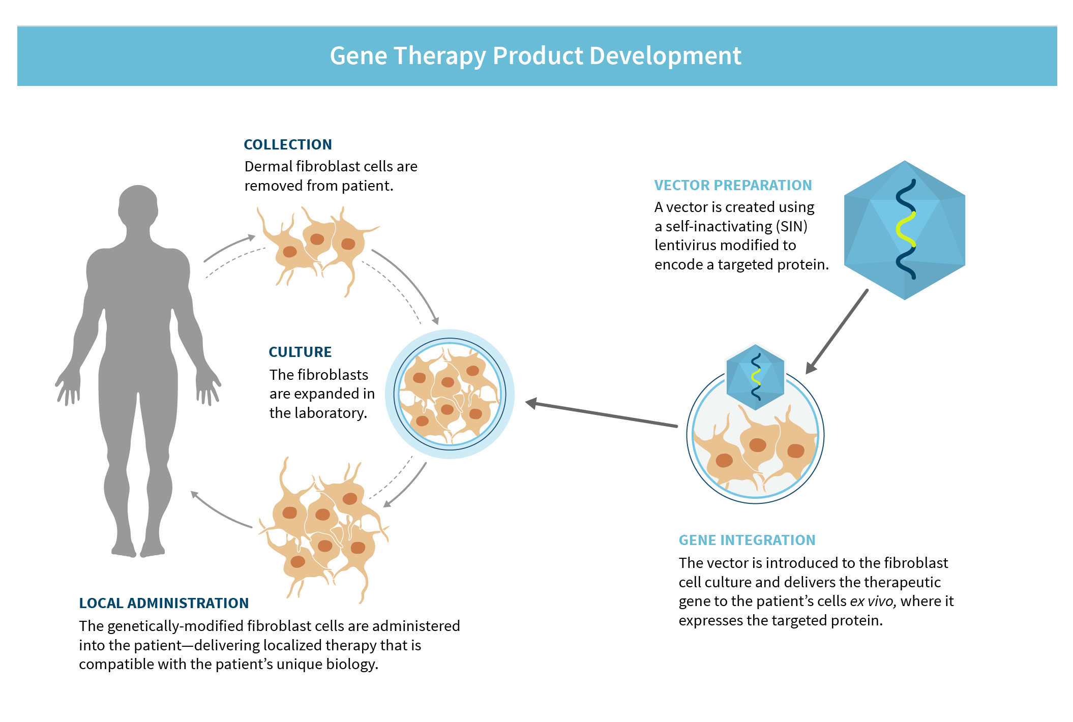 Castle Creek开展的FCX-007疗法则是一种基于细胞的治疗方法,她通过收集患者自身的皮肤成纤维细胞并对其进行基因改造,使其产生功能性COL7,而后将这些细胞被直接输送到患者本人的水泡和伤口上,希望能够促进伤口愈合并粘合皮肤各层。改造的自身细胞能够最大限度降低自体免疫排斥反应,促进疗法的推进。令人高兴的是,正在进行的I/II期临床试验(NCT02810951)中期结果显示,4名RDEB患者在治疗后一年内所有伤口完全愈合。