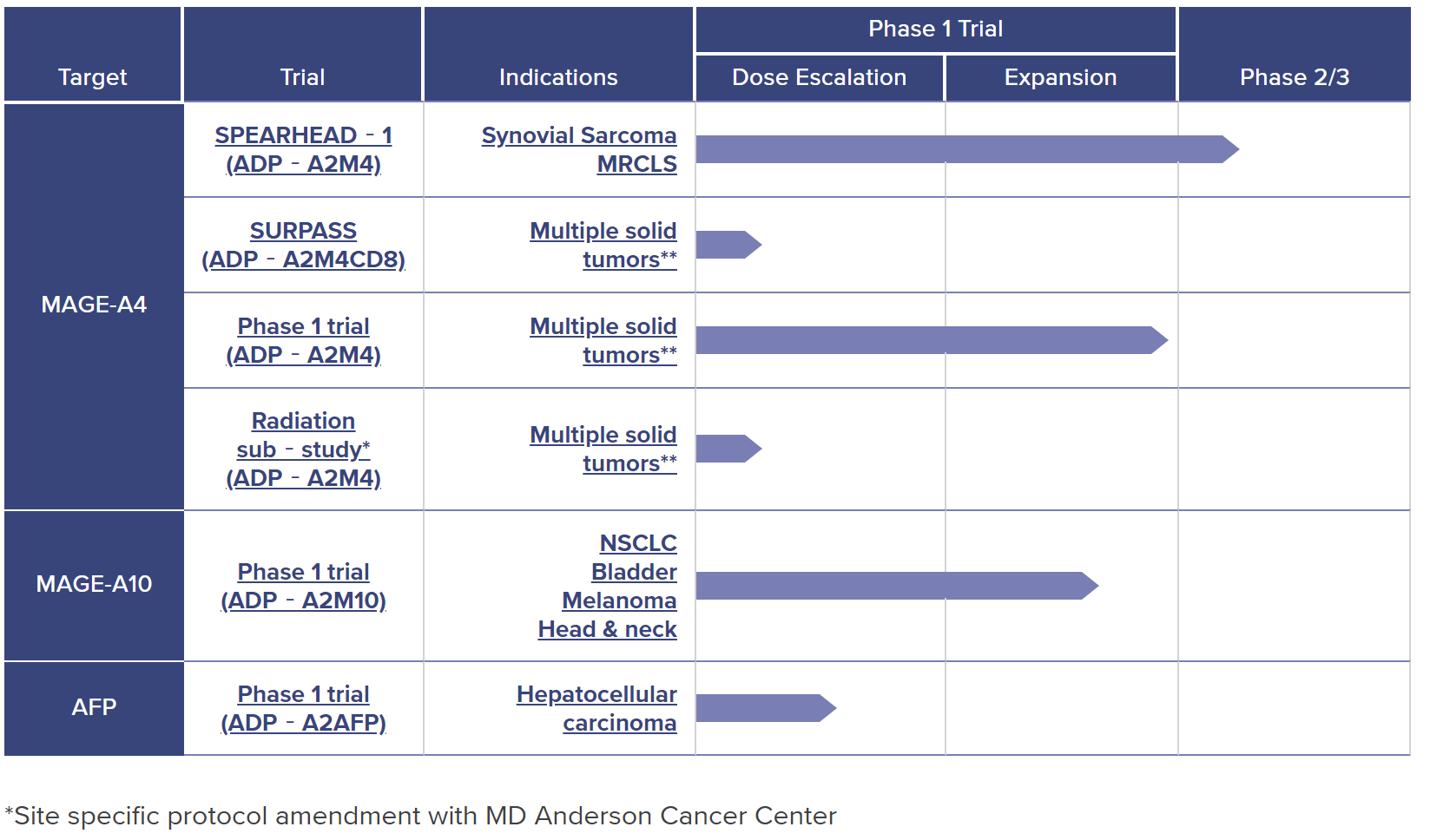 针对实体瘤、肝癌和滑膜肉瘤的早期临床试验进行中,计划在2022年对肉瘤患者进行首次商业治疗