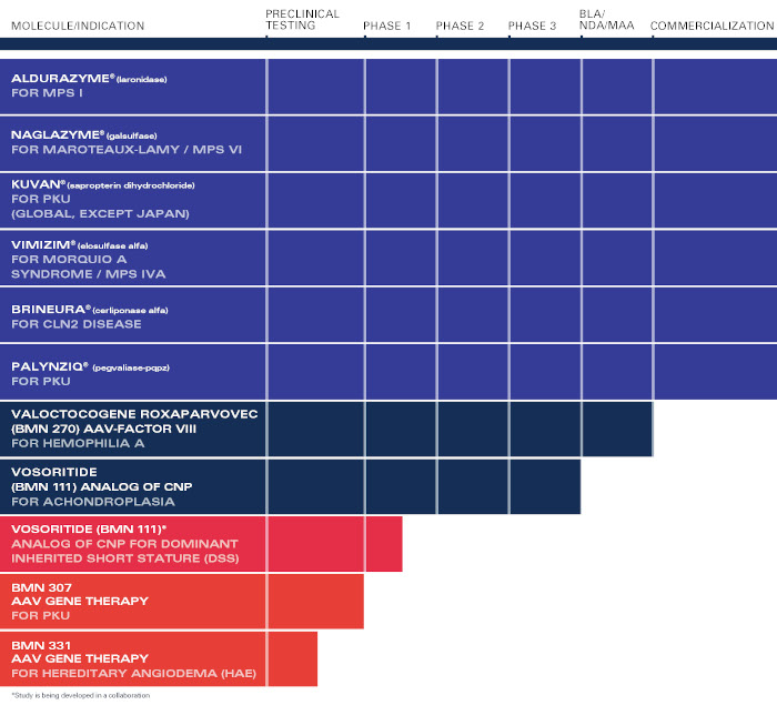 BioMarin是一家全球性的生物技术公司,致力于为患有严重且危及生命的罕见和超罕见基因疾病的患者开发创新疗法并将其商业化,该公司的产品管线涵盖六个商业化产品和多个临床和临床前候选产品。