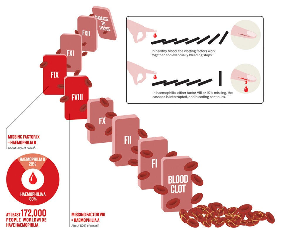 A型血友病是一种由凝血因子VIII缺乏导致的血友病类型,是临床上最常见的血友病,约占血友病人数的80%-85%,而大约三分之一的A型血友病病例是自发基因突变导致的。凝血因子VIII也称为anti-hemoplytic factor/antihemophilic factor (AHF)或globulin (AHG)/antihemophilic factor A,产生于血管内皮细胞。