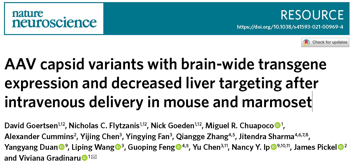 Nat Neurosci. | 新型AAV血清型,静脉到脑,一针注射,全脑表达,肝脏低靶向性!