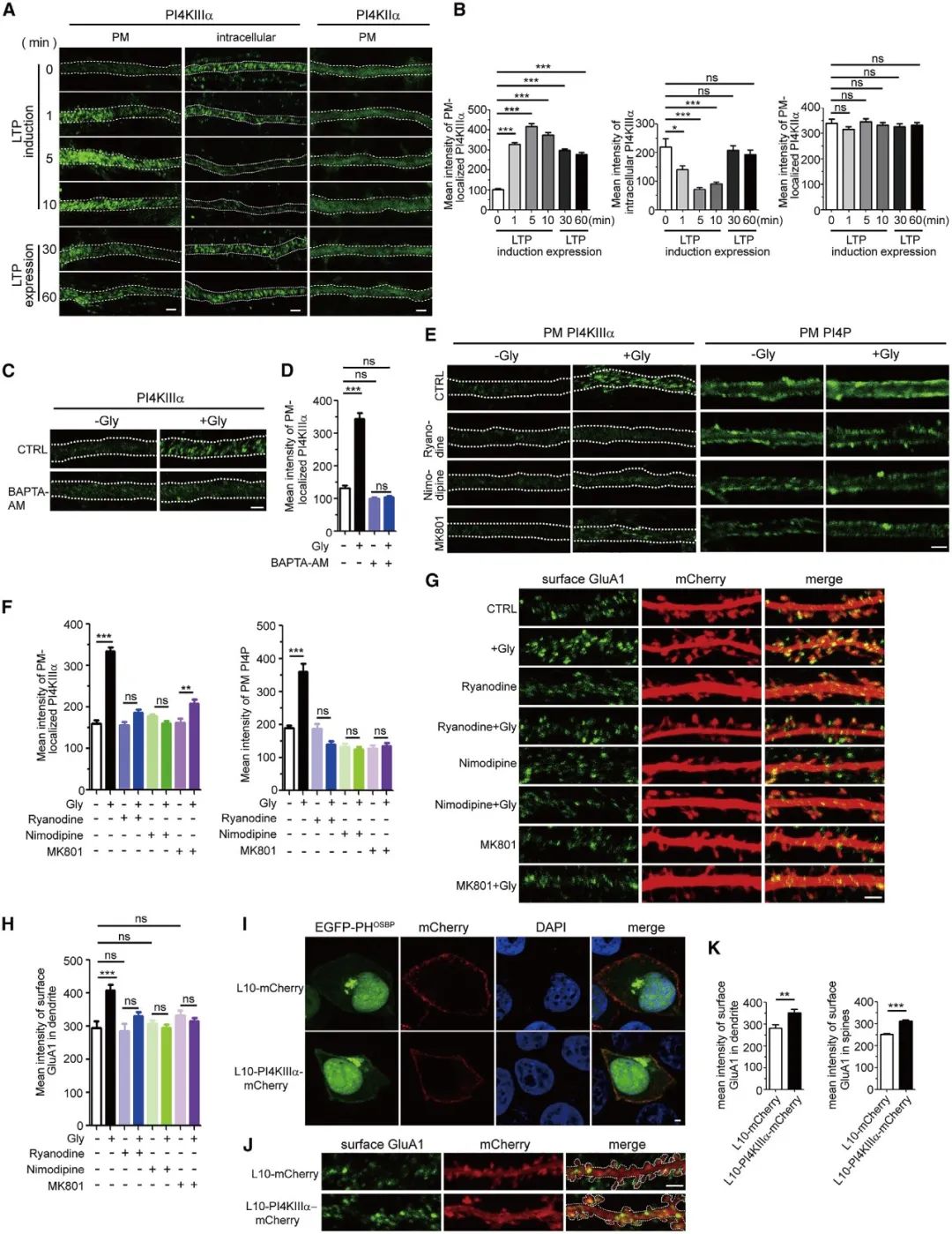 上述结果共同提示了产生LTP的海马神经元中,细胞内钙离子浓度上升促进了PI4KIIIa向细胞膜表面募集,进而促进PI4P的合成过程。