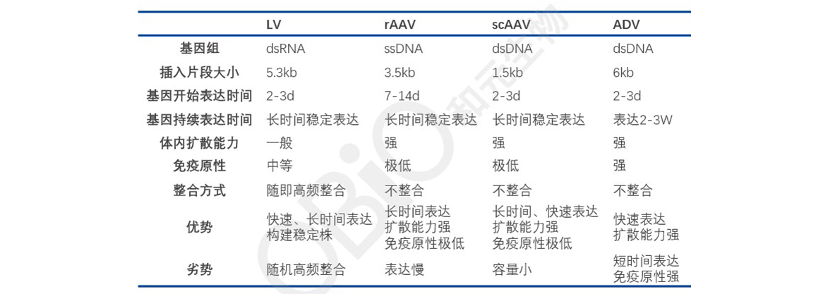 相较于转基因小鼠,借助病毒载体介导的Cre系统实现特异性操作神经元或基因的目的,同时可以大大缩短实验的周期,另外,多种多样的病毒载体,可以最大限度的满足各类实验的需求。各类病毒载体的特点如下: