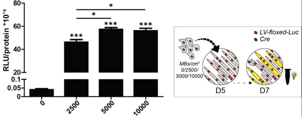 利用LV介导的Cre体系整合至基因组的特性,可以实现稳定细胞株的构建。荷兰马斯特里赫特大学医学中心Anita Kneppers研究团队[2],利用LV病毒载体构建了一种基于Cre/loxP的细胞融合报告体系,实现成肌细胞-肌管融合后荧光素酶的条件表达。