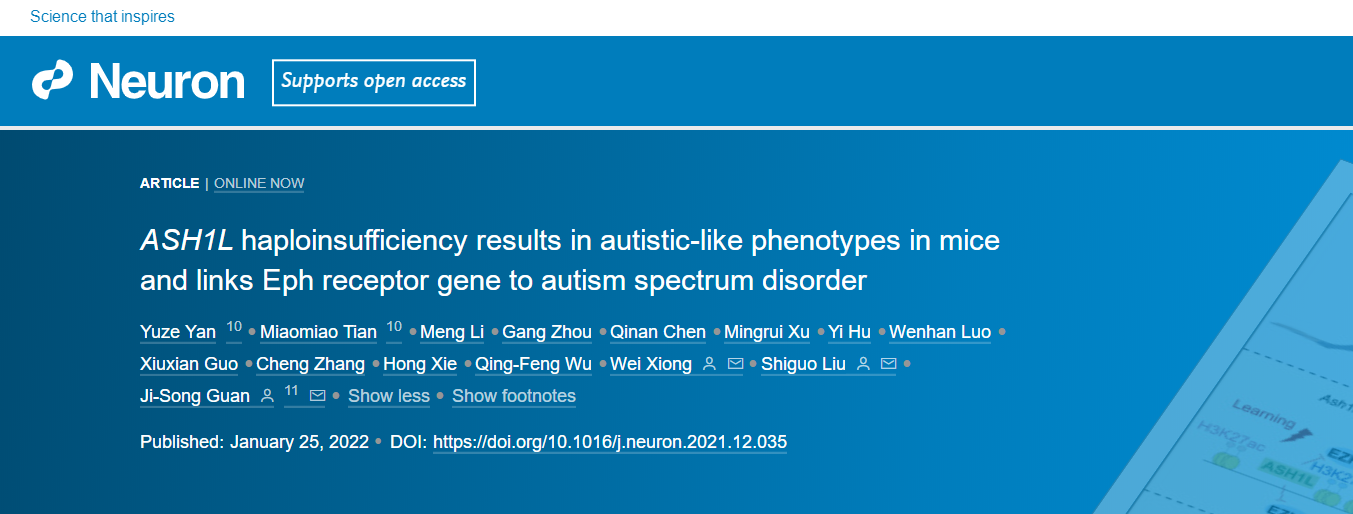 Neuron | 拯救星星之子!上科大管吉松组揭示ASH1L单倍不足致小鼠自闭症的神经机制