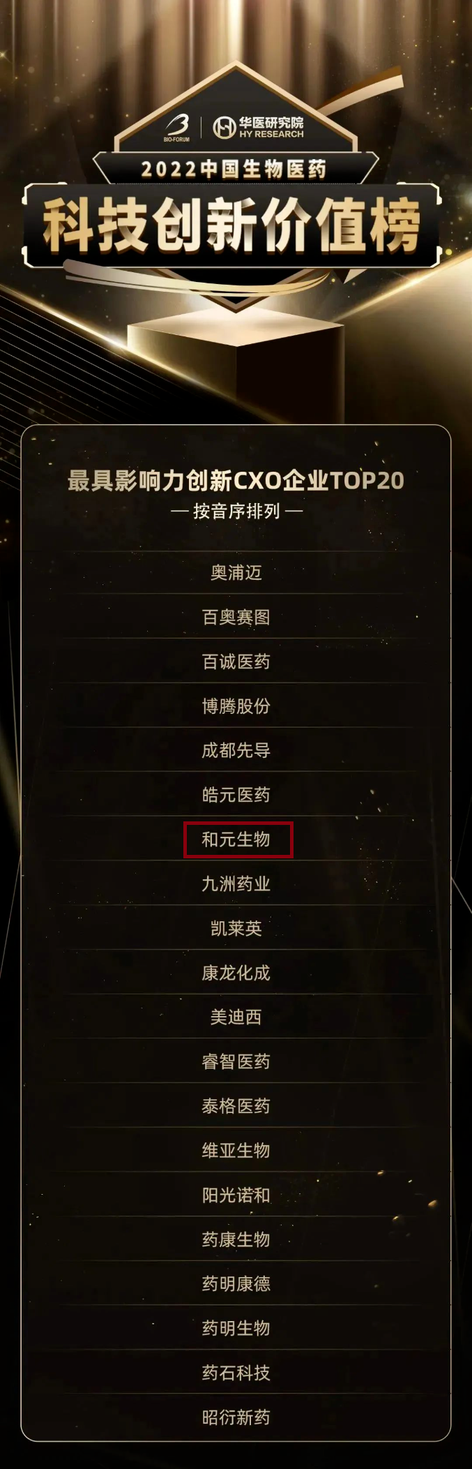 中国-九游·会J9官方网站|真人游戏第一品牌 荣登2022中国生物医药科技创新价值榜“最具影响力创新CXO企业”