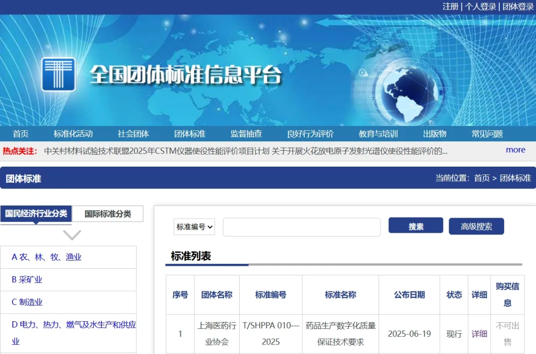 6月16日,上海医药行业协会正式发布了修订后的《药品生产数字化质量保证技术要求》团体标准,新标准编号为T/SHPPA 010-2025,将取代此前的T/SHPPA 010-2021版本。